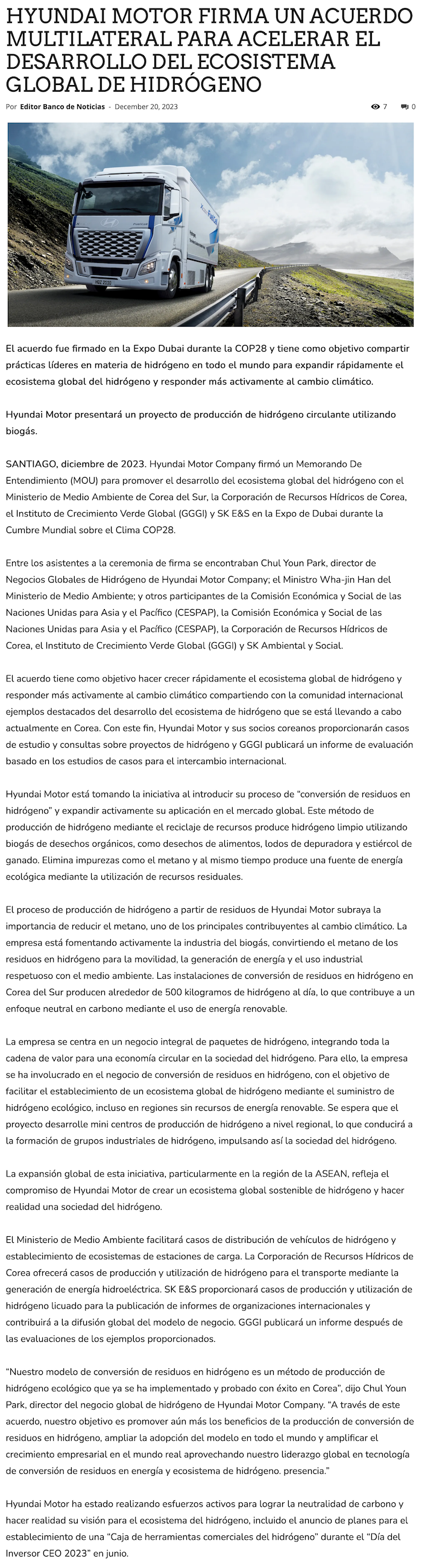 Hyundai firma un acuerdo multilateral para acelerar el desarrollo del ecosistema global de hidrógeno - (autocosmos.cl)