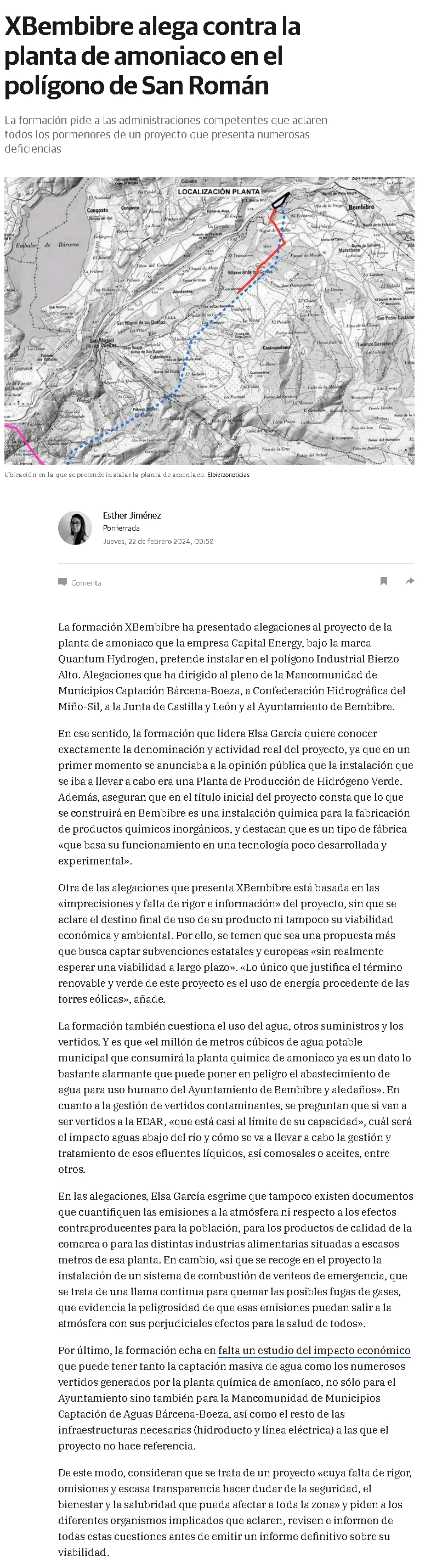 Alertan del peligro que supondrá la planta de amoníaco verde en Bembibre para el abastecimiento de agua - (lanuevacronica.com )
