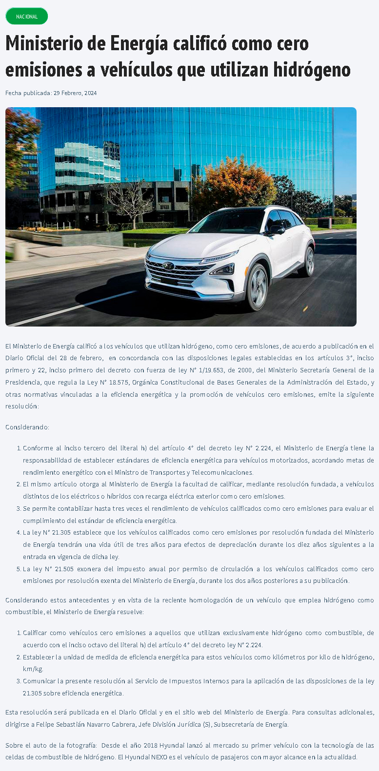 Ministerio de Energía califica como vehículos de cero emisiones a aquellos que usen H2V - (revistaei.cl)