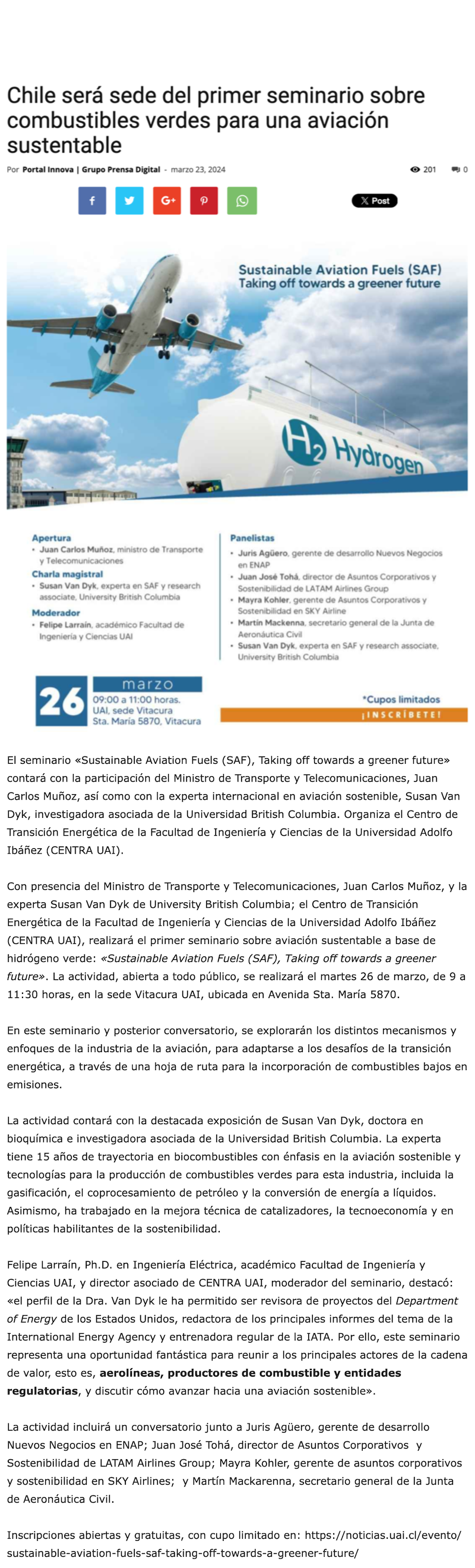 Chile será sede del primer seminario sobre combustibles verdes para una aviación sustentable - (redimin)