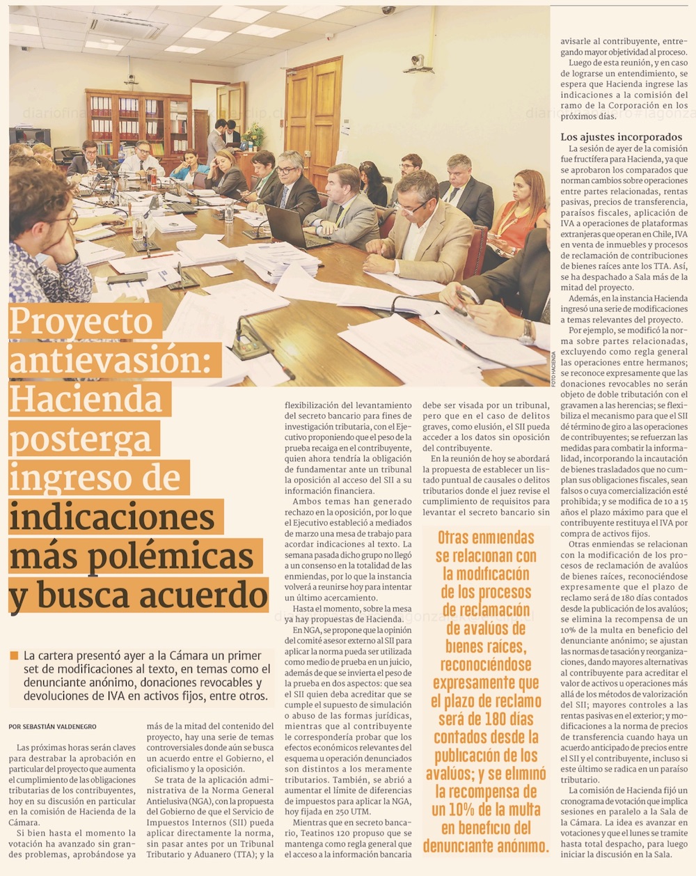 Postergan envío de proyecto que revive Ref. Tributaria - (El Mercurio de Santiago)