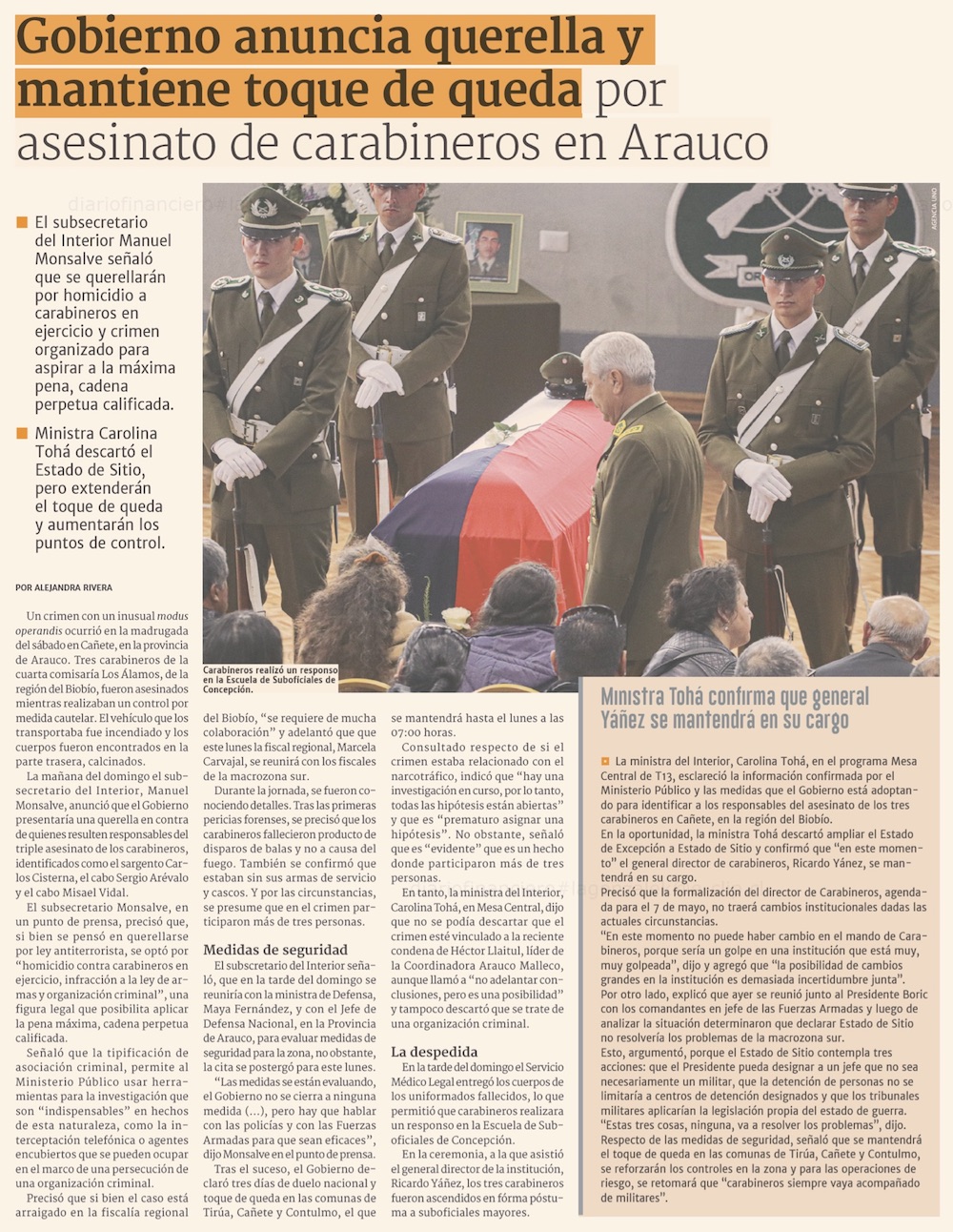 Asesinato de tres carabineros tras emboscada en ruta de Cañete, en Biobío, remece al país - (El Mercurio de Santiago)