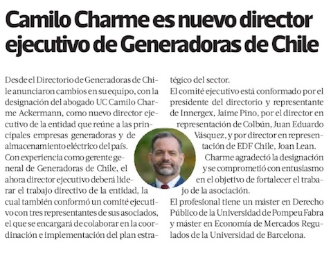 Camilo Charme asume como nuevo director ejecutivo de Generadoras de Chile - (DF Online)