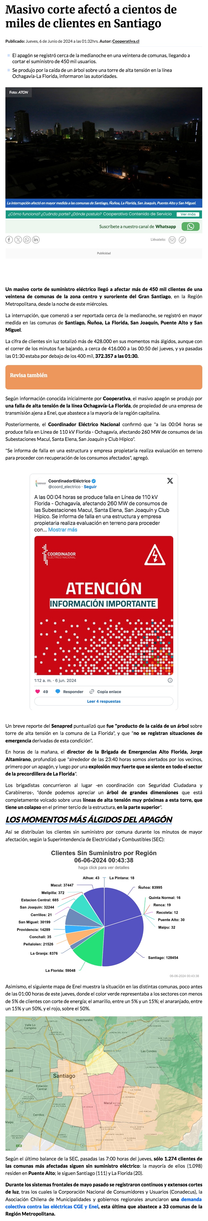 Insólito colapso de torre de alta tensión en La Florida provoca mega apagón en Santiago - (Las Últimas Noticias)