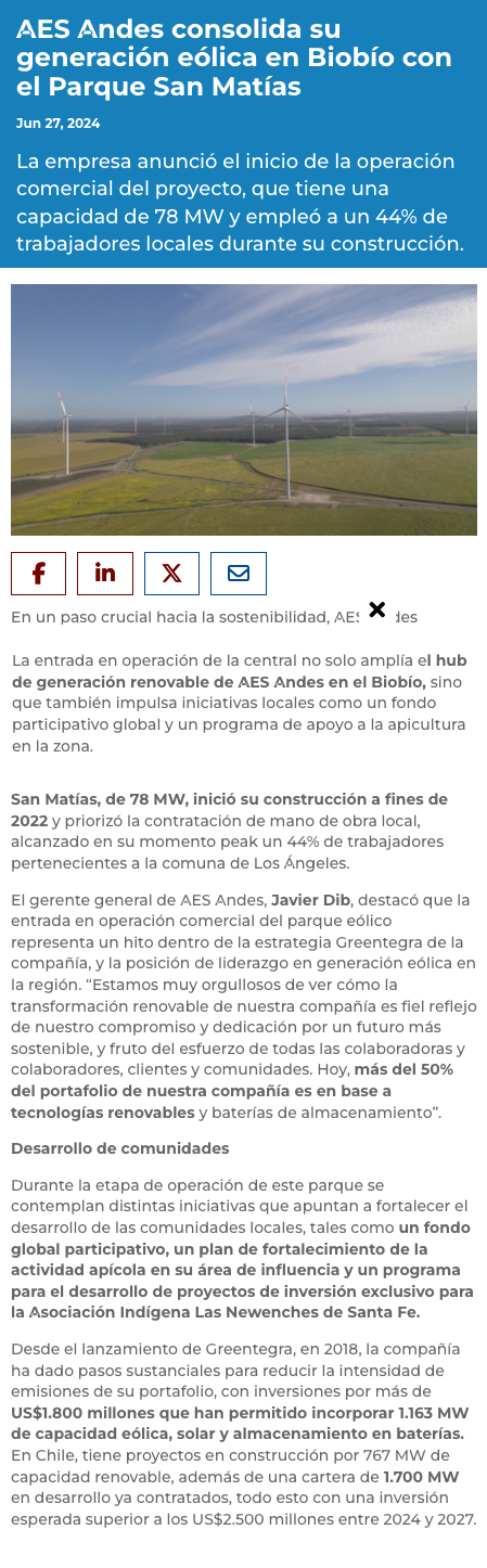 AES Andes inició operación de su Parque Eólico San Matías en Los Ángeles - (revistacrisol.cl)