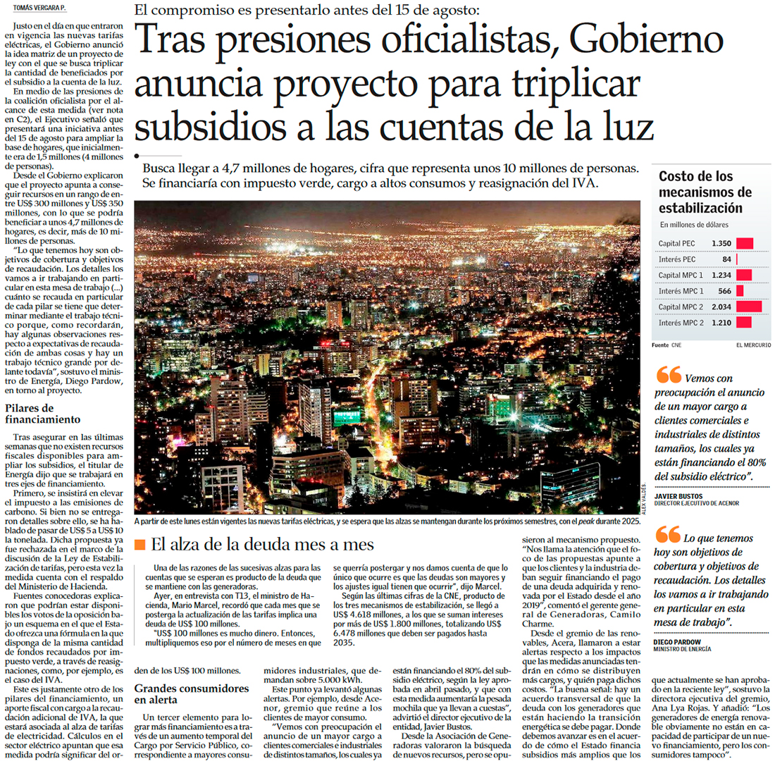 Gobierno busca triplicar cobertura del subsidio eléctrico, pero sorprende con idea para reducir en 7% el precio de la energía - (Pulso)
