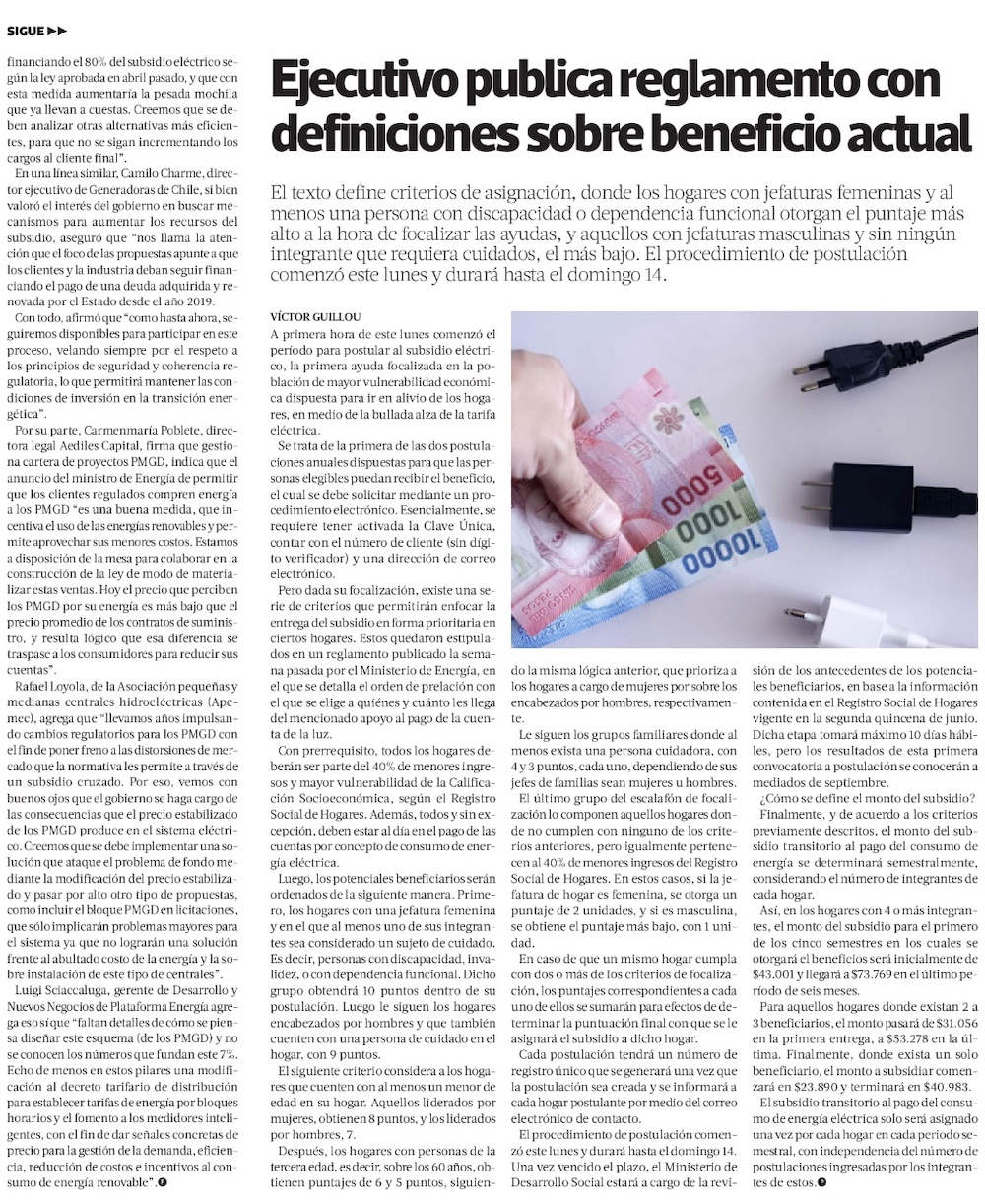 Tras presiones oficialistas, Gobierno anuncia proyecto para triplicar subsidios a las cuentas de la luz - (El Mercurio de Santiago)