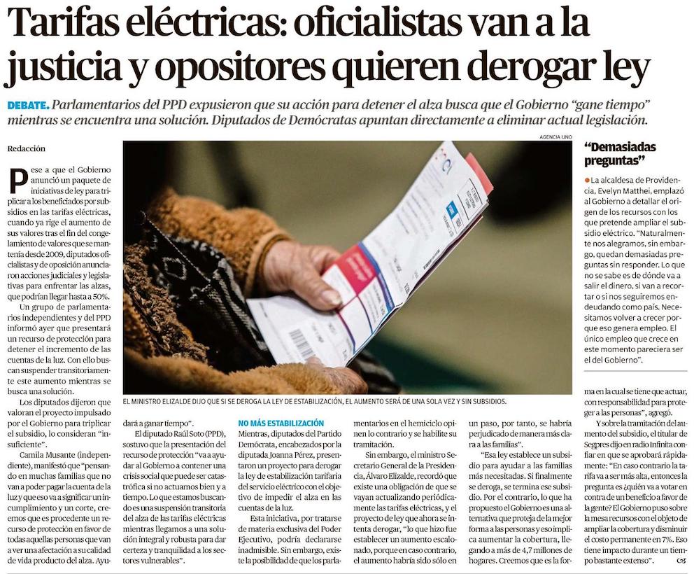 Subsidio eléctrico: oposición apoya fórmula del IVA, pero duda de mayores cargos a grandes clientes y del alza al impuesto verde - (Pulso)
