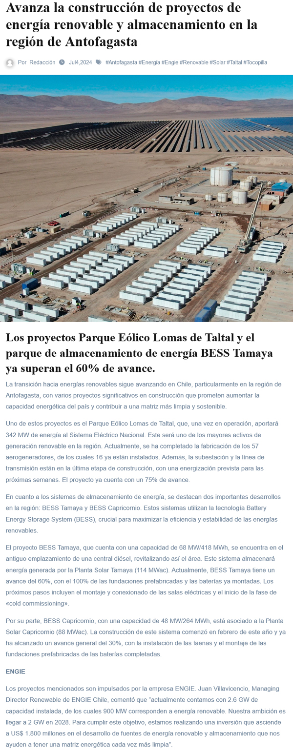Avanza la construcción de proyectos de energía renovable y almacenamiento en la Región de Antofagasta - (portalminero)