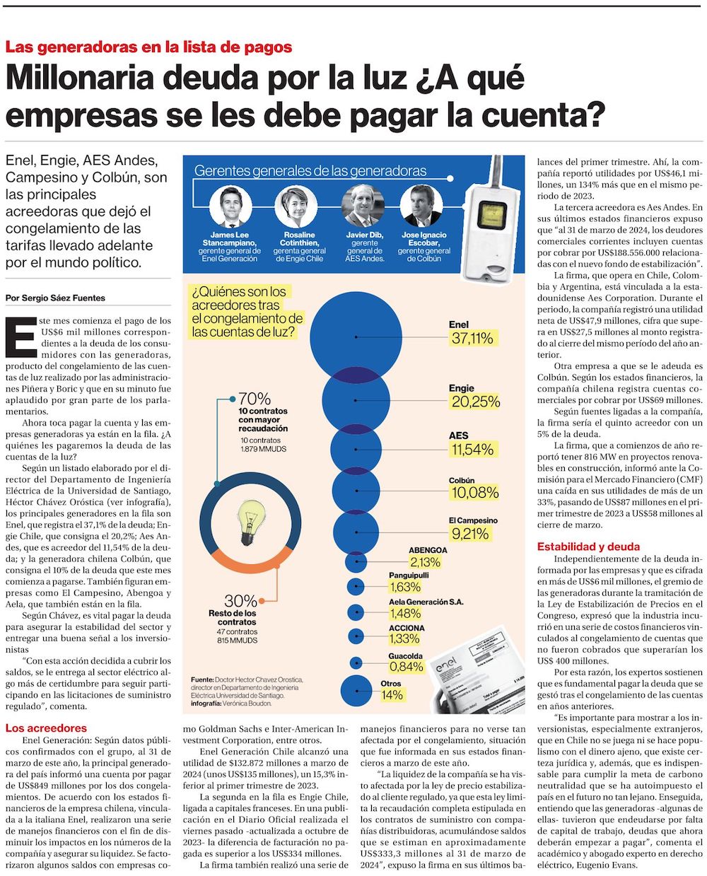 Cuentas de la luz: surge inquietud por no considerar cifras de morosidad en cálculos de Hacienda sobre recaudación de IVA - (Diario Financiero)