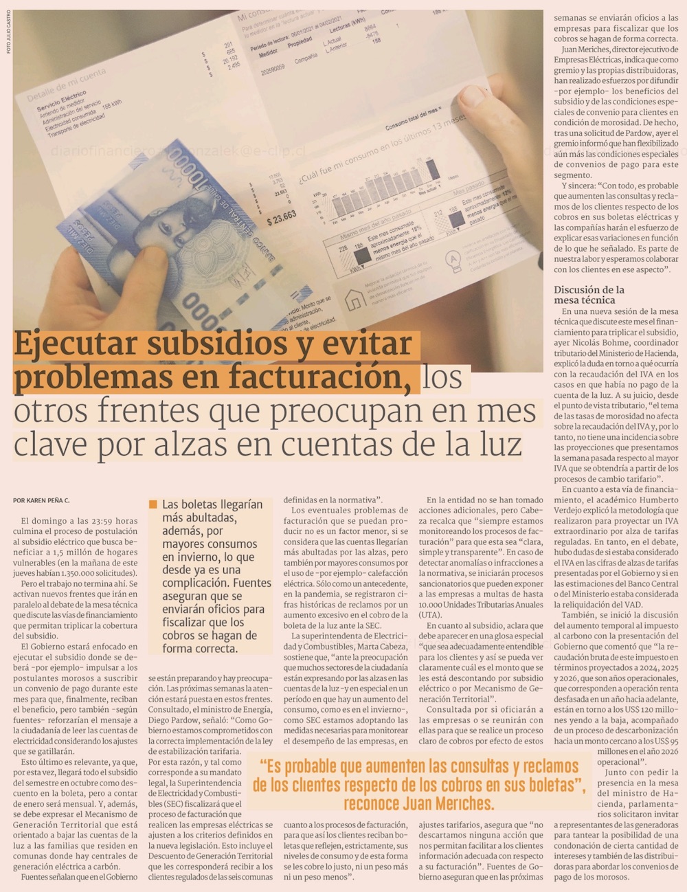 Otra sorpresa: Ignorada deuda con industria tendrá un impacto extra en las cuentas de la luz - (El Mercurio de Santiago)