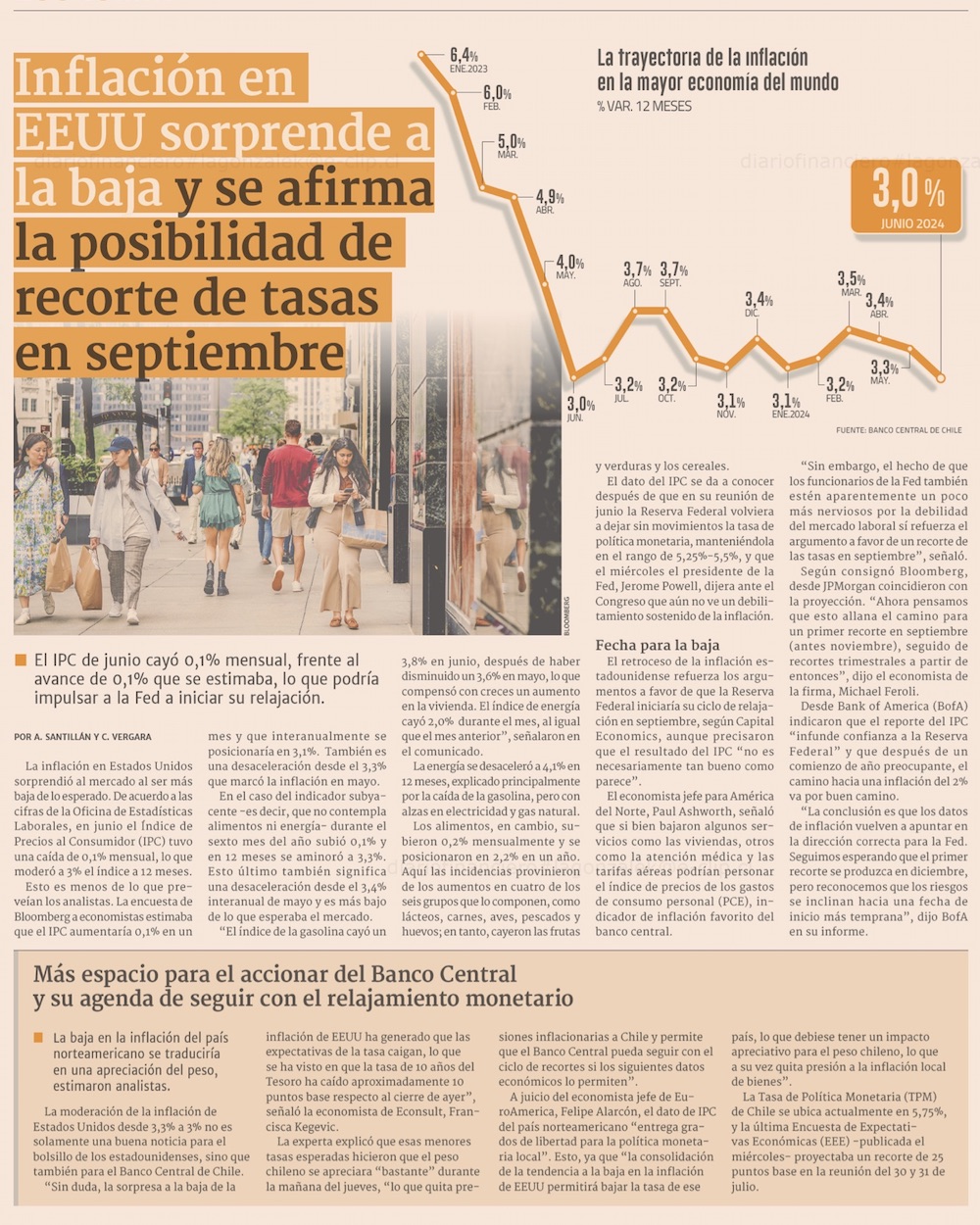 Tras bajo IPC en EE.UU, mercados se aprontan a un próximo recorte de tasas de la Reserva Federal y en Chile el dólar se acercó a los $900 - (Pulso)