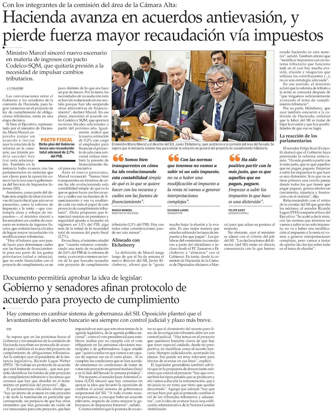 Hacienda se abre a reducir la magnitud de las alzas de impuestos para destrabar el proyecto antievasión - (Diario Financiero)