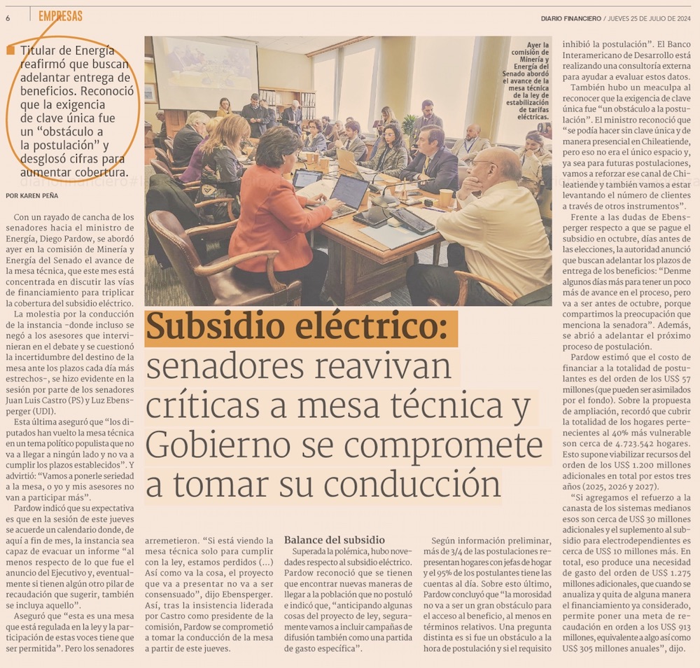 Senadores arremeten contra mesa por subsidios eléctricos y piden claridad para extender beneficios - (El Mercurio de Santiago)