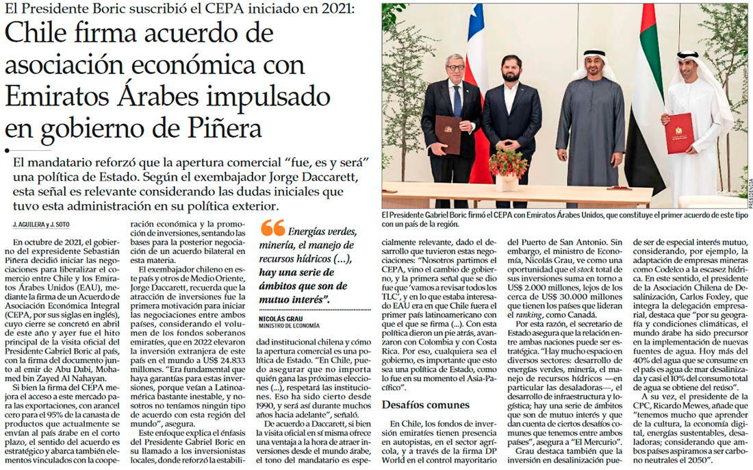 Boric desde Abu Dabi pide “dejar nuestros prejuicios” con países de Medio Oriente - (El Mercurio de Santiago)