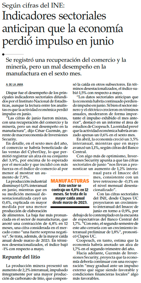 ¿Imacec pierde vuelo? Se dispersan las proyecciones sobre lo que habría pasado con la economía local en junio - (Diario Financiero)