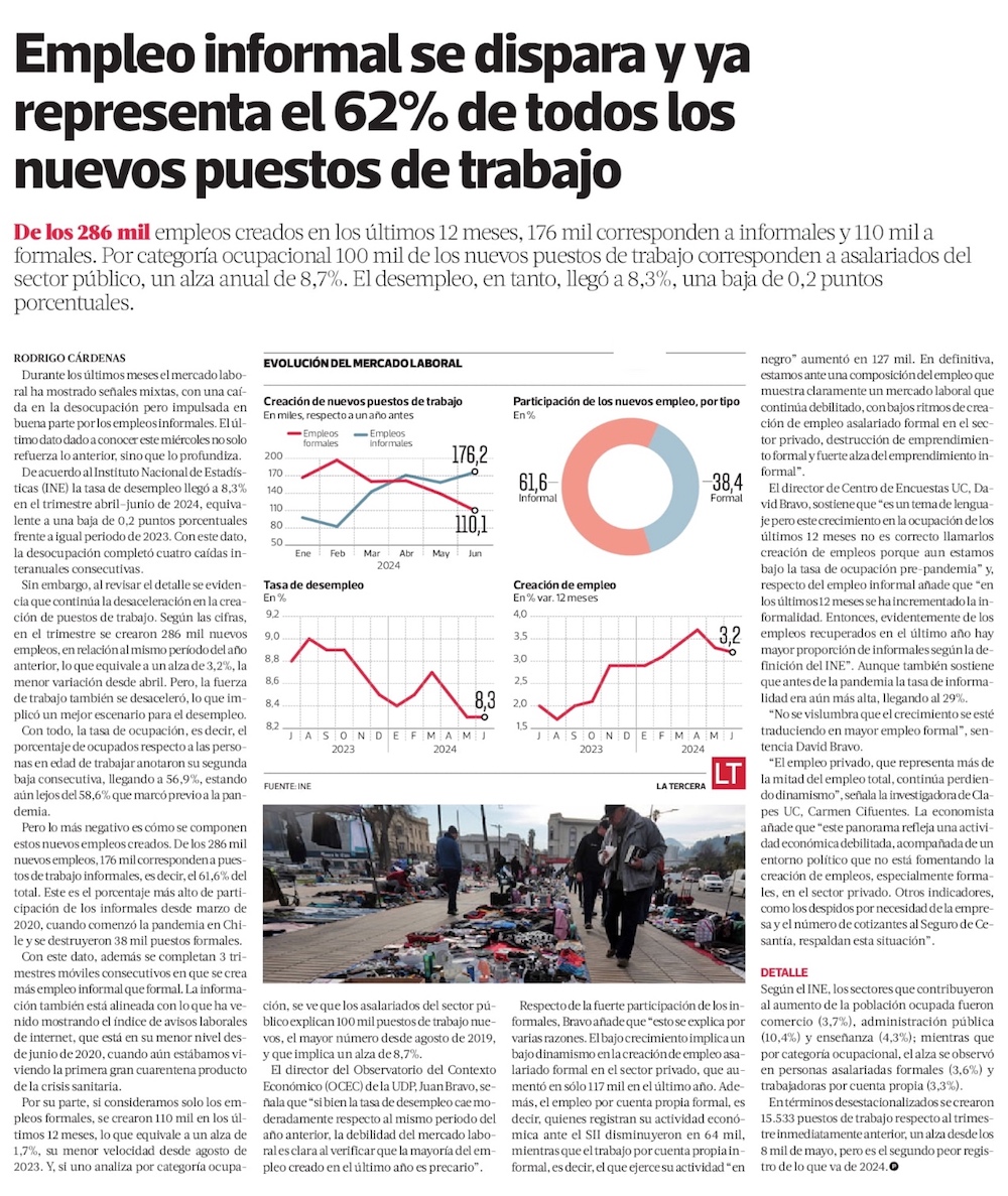 Desempleo vuelve a bajar, pero no despeja dudas de analistas por rol de la informalidad y del sector público - (Diario Financiero)