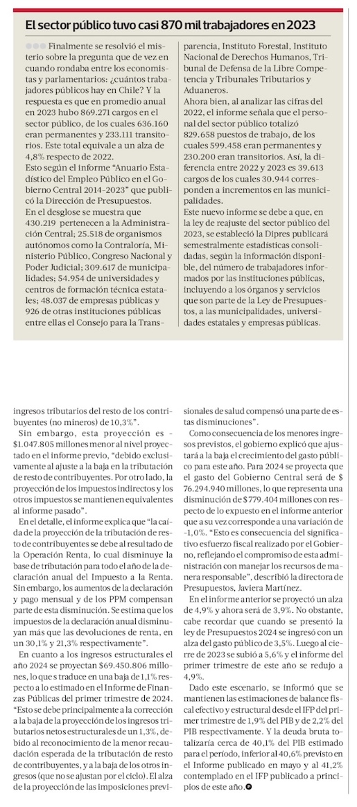 Hacienda baja PIB para el año, sube inflación para 2025 por la luz y anuncia millonario plan de recorte del gasto público - (Diario Financiero)