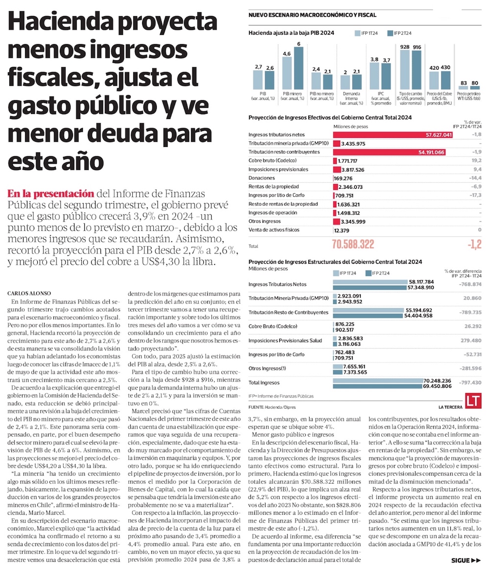 Hacienda baja PIB para el año, sube inflación para 2025 por la luz y anuncia millonario plan de recorte del gasto público - (Diario Financiero)