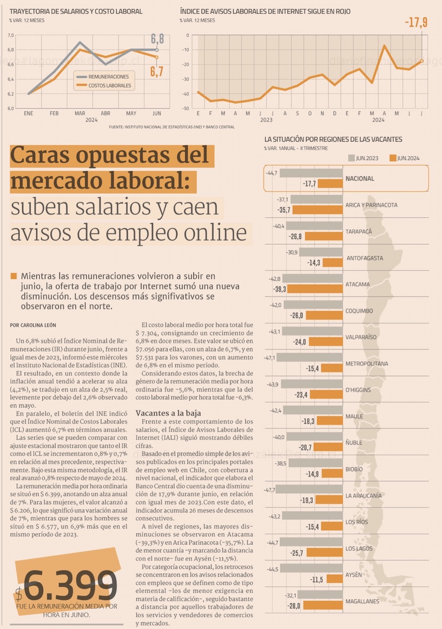 Salarios reales suben 2,5% en junio y completan 16 meses consecutivos de incrementos - (El Mercurio de Santiago)