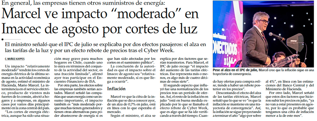 Alto IPC de julio ratifica efecto de alza de la luz y pronósticos de inflación se afianzan sobre 4,5% para fin de año - (Diario Financiero)