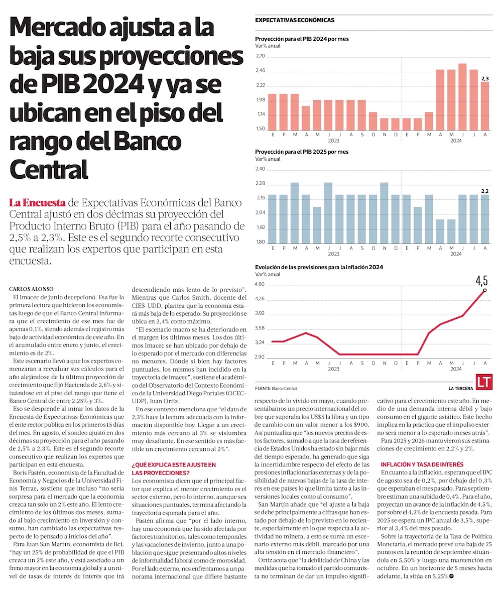 Sondeo del B. Central ratifica pronóstico de más inflación y menos PIB para el año - (Diario Financiero)