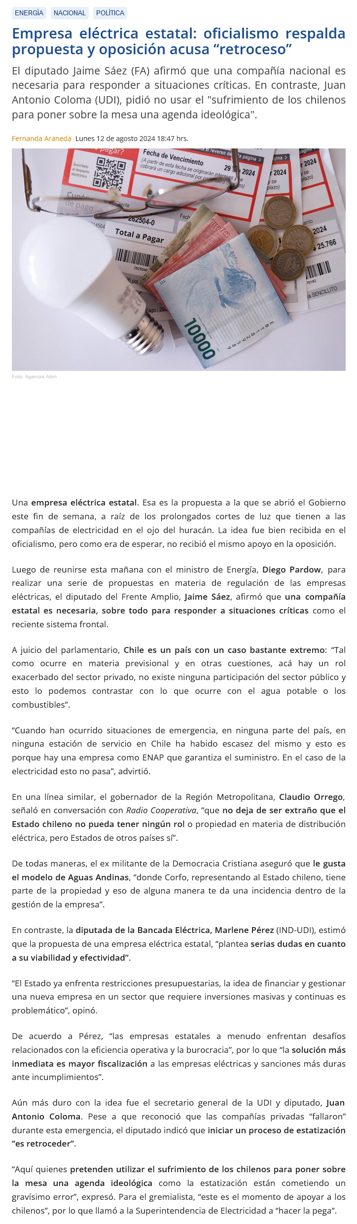 El rechazo de expertos y gremios a la idea de Pardow de crear empresa eléctrica estatal (y el frente en el gobierno) - (ex-ante.cl)