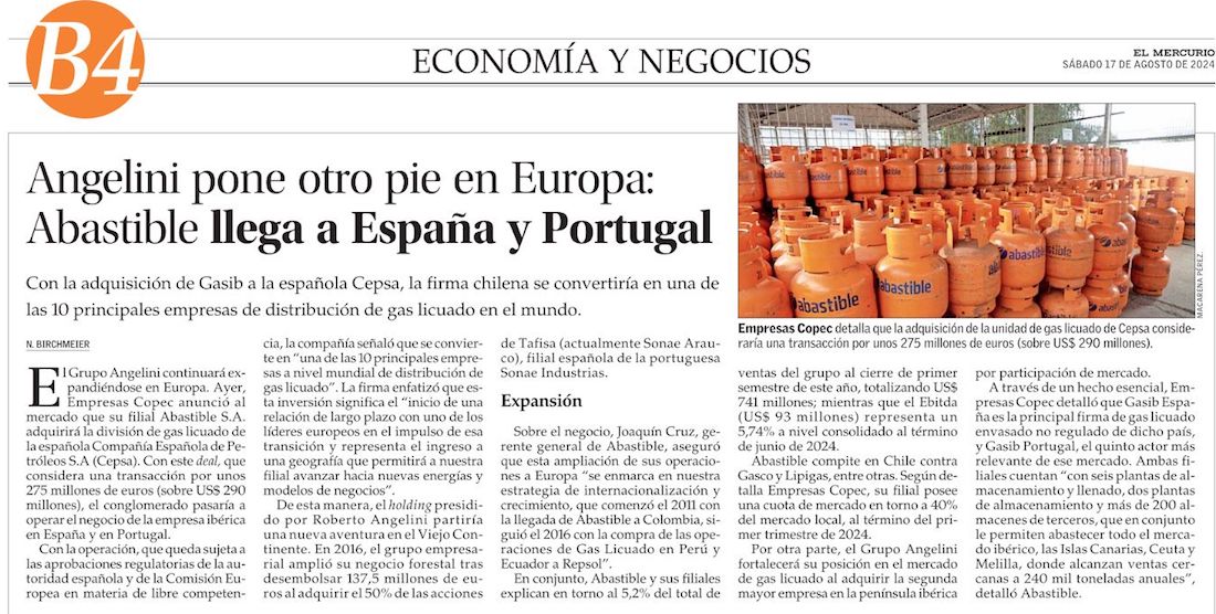 Abastible irrumpe en Europa en gas y apunta a las energías verdes - (Diario Financiero)