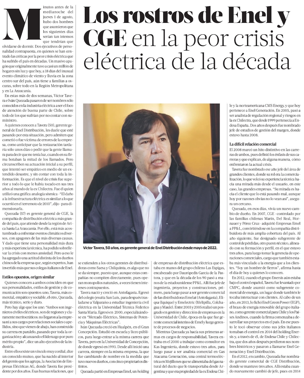 “Donde hubo la mayor falencia (de Enel) fue en no tener una comunicación oportuna con los clientes” - (Diario Financiero)