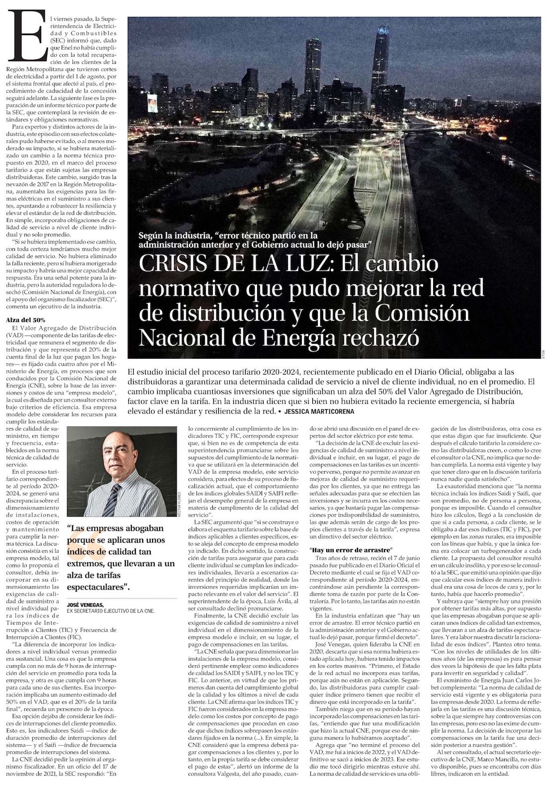 “Donde hubo la mayor falencia (de Enel) fue en no tener una comunicación oportuna con los clientes” - (Diario Financiero)