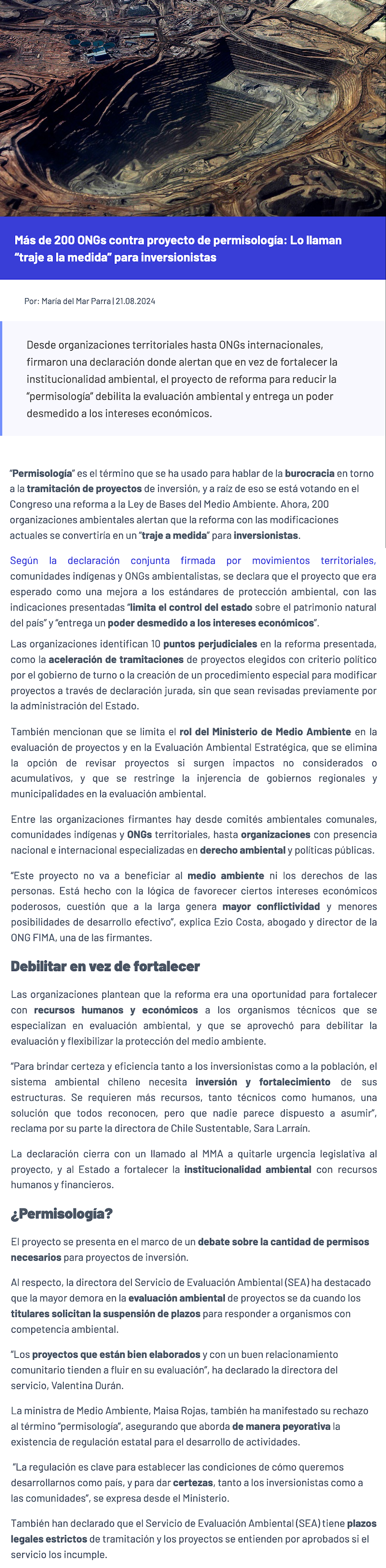ONGs llaman a quitar la urgencia al proyecto de ley de "permisología ambiental" - (cooperativa online)