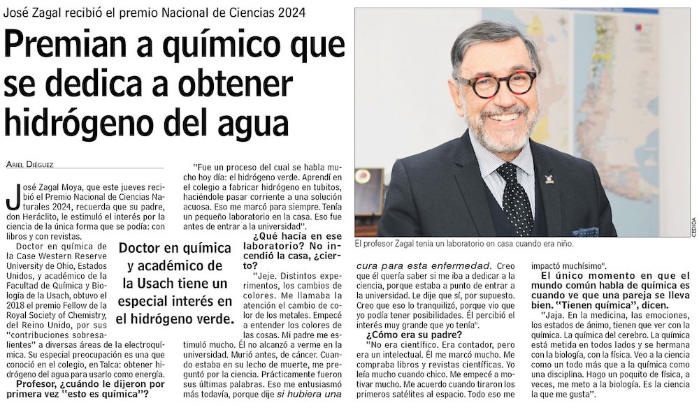 José Zagal recibe el Premio Nacional de Ciencias Naturales 2024: ha dedicado su vida a estudiar el H2V - (biobiochile online)