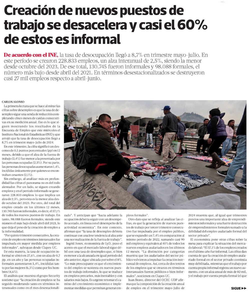 Informalidad laboral sube liderada por mujeres y creación de empleo privado se desacelera - (El Mercurio de Santiago)
