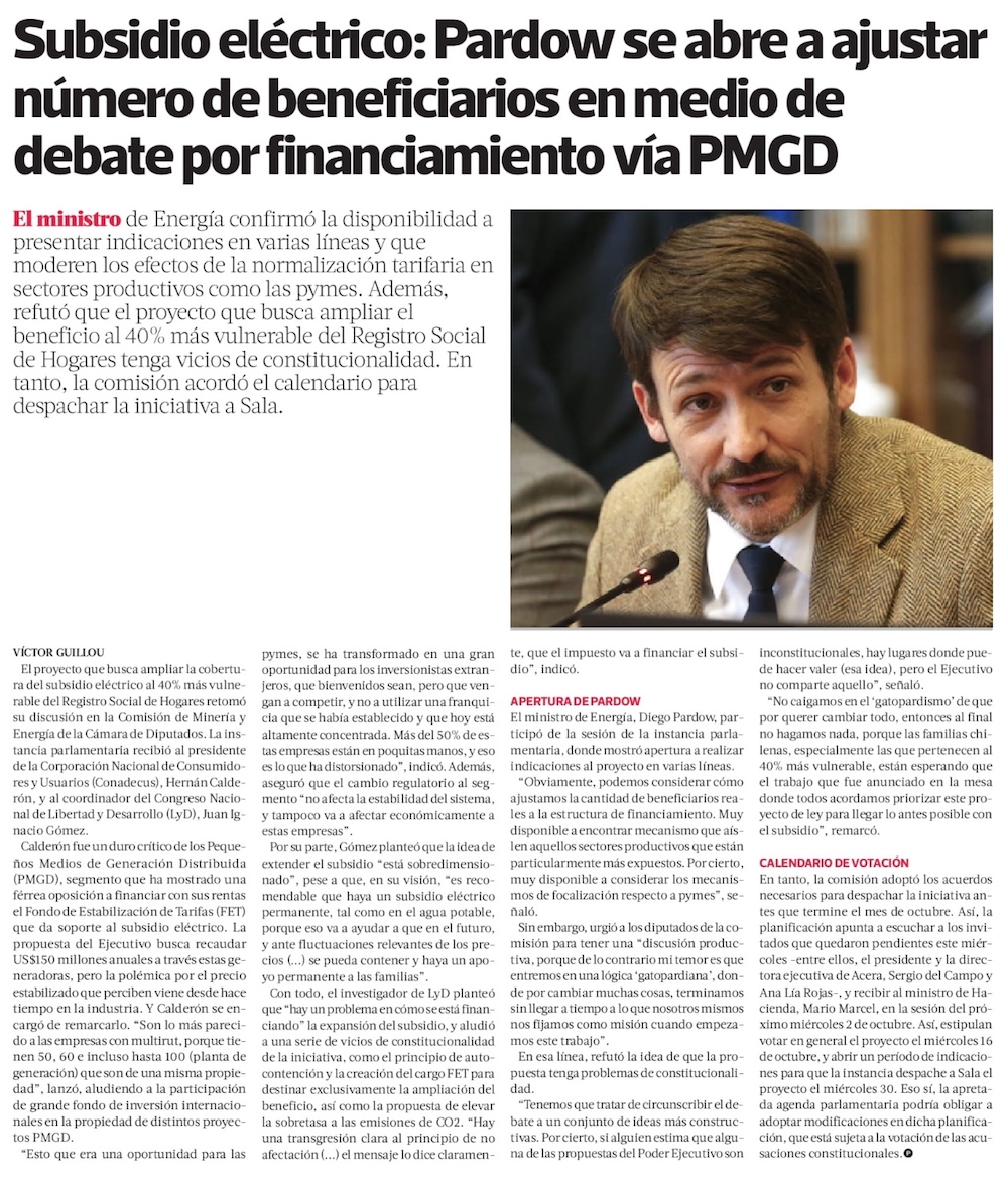 Subsidio eléctrico: Gobierno reafirma voluntad de ajustes y diputados definen fecha para votar - (Diario Financiero)