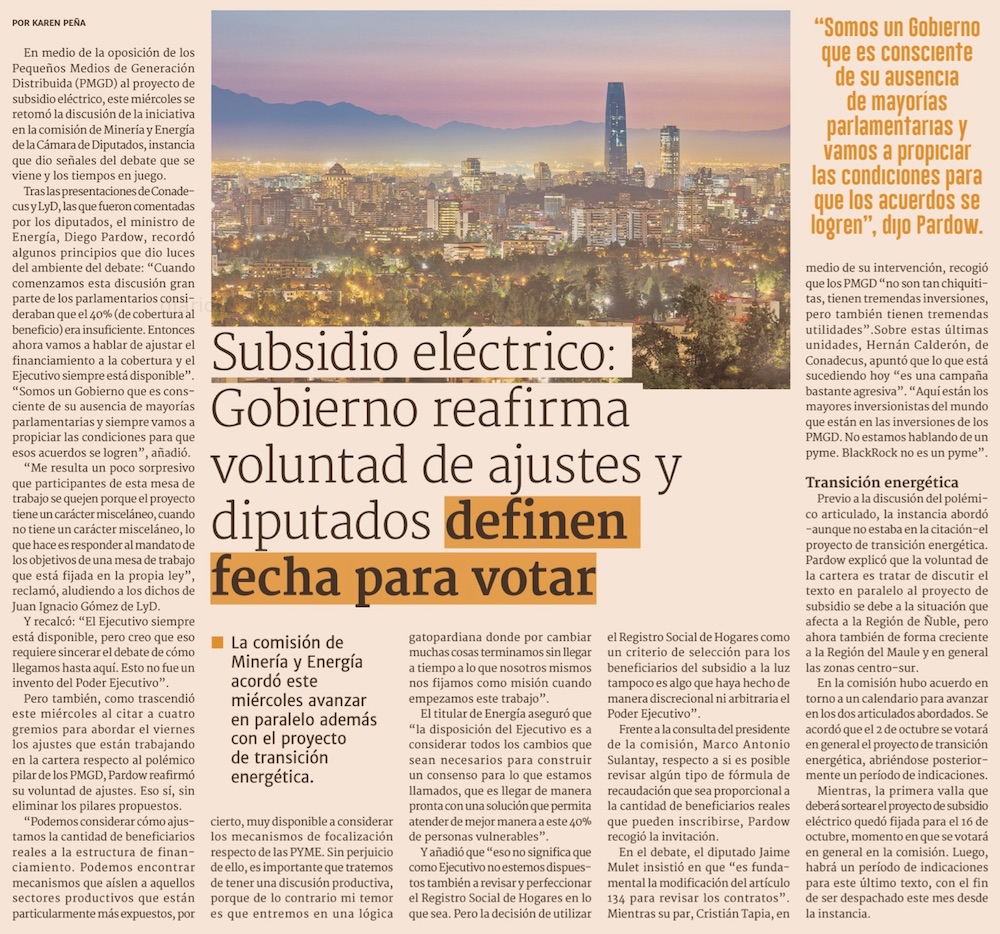 Subsidio eléctrico: Pardow se abre a ajustar número de beneficiarios en medio de debate por financiamiento vía PMGD - (Pulso)