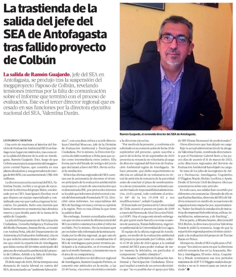 Exdirector ejecutivo del SEA: “El estándar de la región respecto a Colbún fue extraordinariamente alto” - (Diario Financiero)