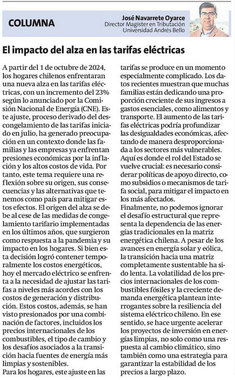 El impacto del alza en las tarifas eléctricas - (El Mercurio de Valparaíso)