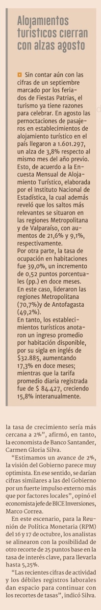 Velocidad de la economía se frena en agosto, y presiona la meta de crecimiento y tasas del BC - (El Mercurio de Santiago)