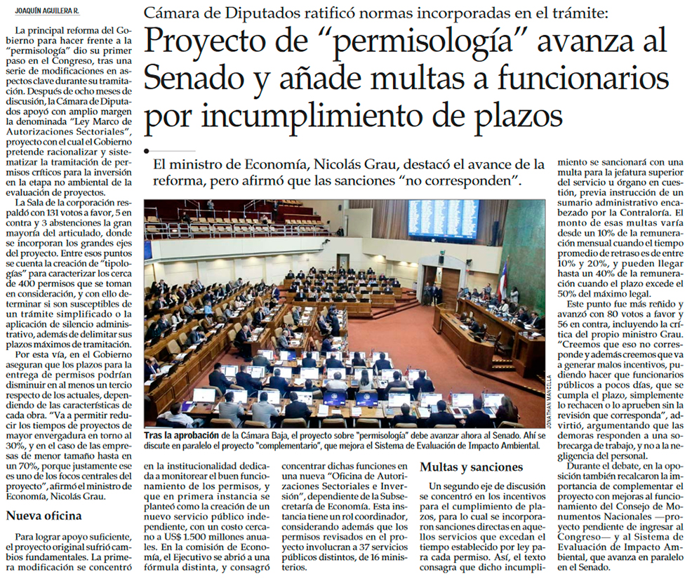 Cámara de Diputados aprueba proyecto de permisología y lo despacha al Senado - (Pulso)