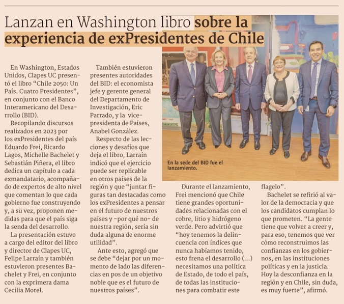 El cara a cara de Frei y Bachelet en Washington: Analizaron el sistema político, el crecimiento y el estallido social - (La Tercera)