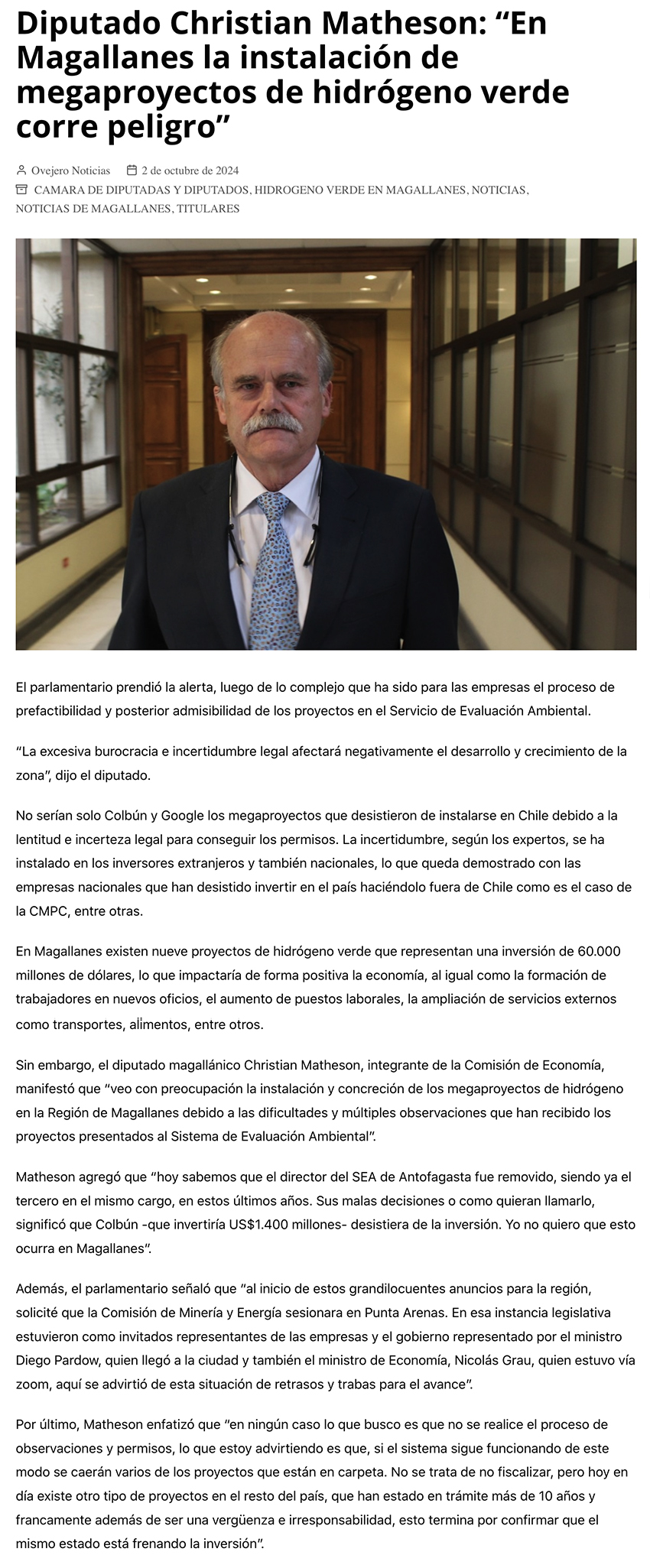 “En Magallanes la instalación de mega proyectos de Hidrógeno Verde corren peligro” - (meridianolaradio.cl)