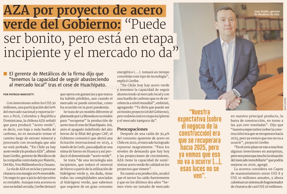 AZA por proyecto de acero verde del Gobierno: «Puede ser bonito, pero está en etapa incipiente y el mercado no da» - (redimin)