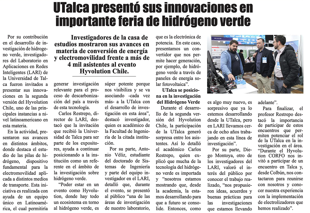 UTalca presentó sus innovaciones en importante feria de hidrógeno verde - (Adprensa.cl)
