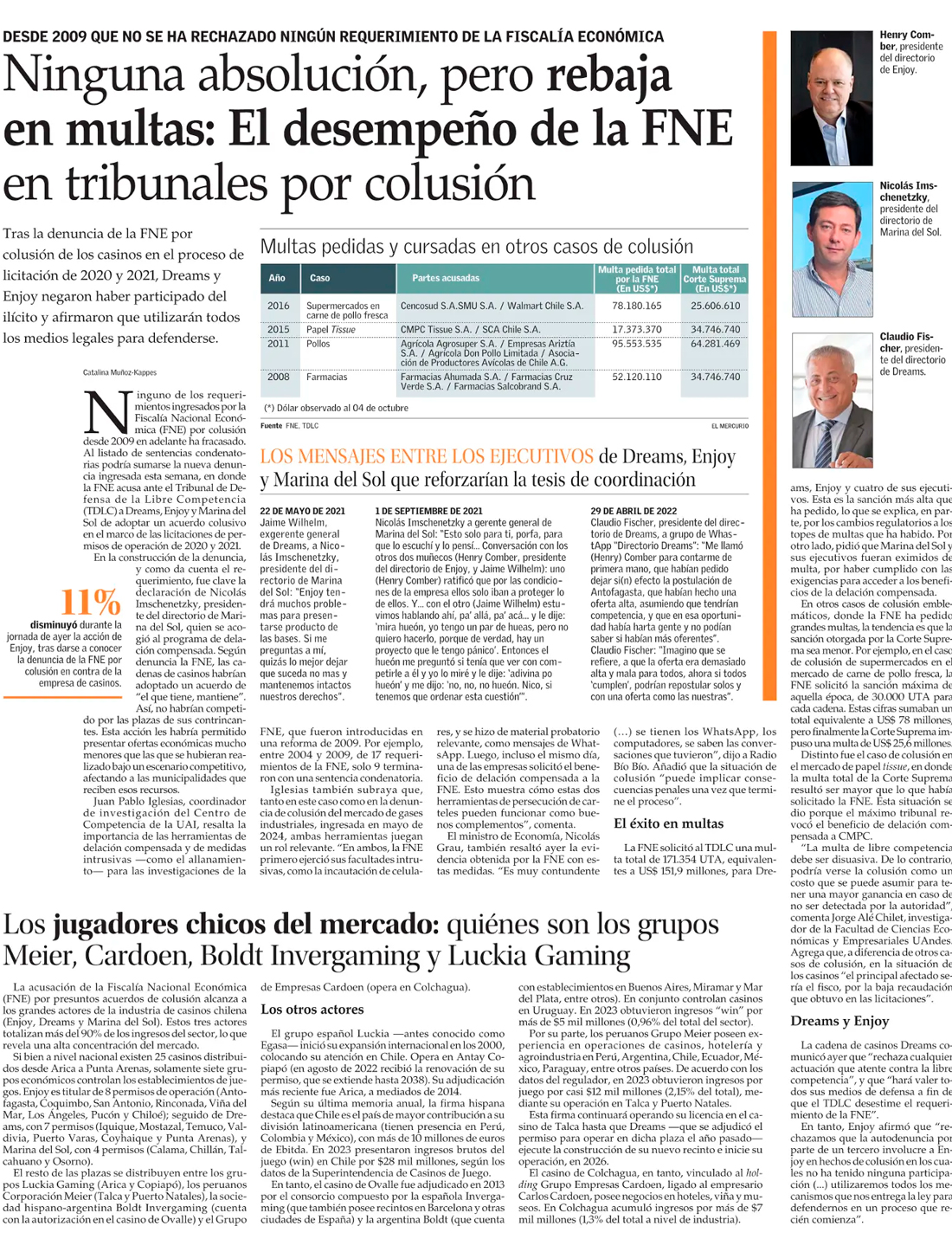 La “artillería legal” que preparan los acusados por la FNE en la colusión de los casinos - (El Mercurio de Santiago)