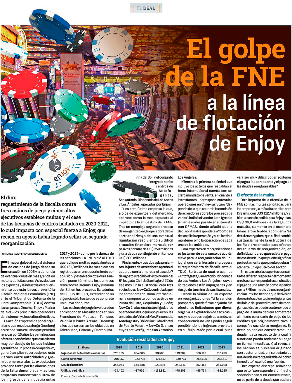 La “artillería legal” que preparan los acusados por la FNE en la colusión de los casinos - (El Mercurio de Santiago)