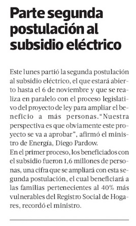 Gobierno llama a acelerar tramitación de proyecto de subsidios de cuentas de luz - (El Mercurio de Santiago)