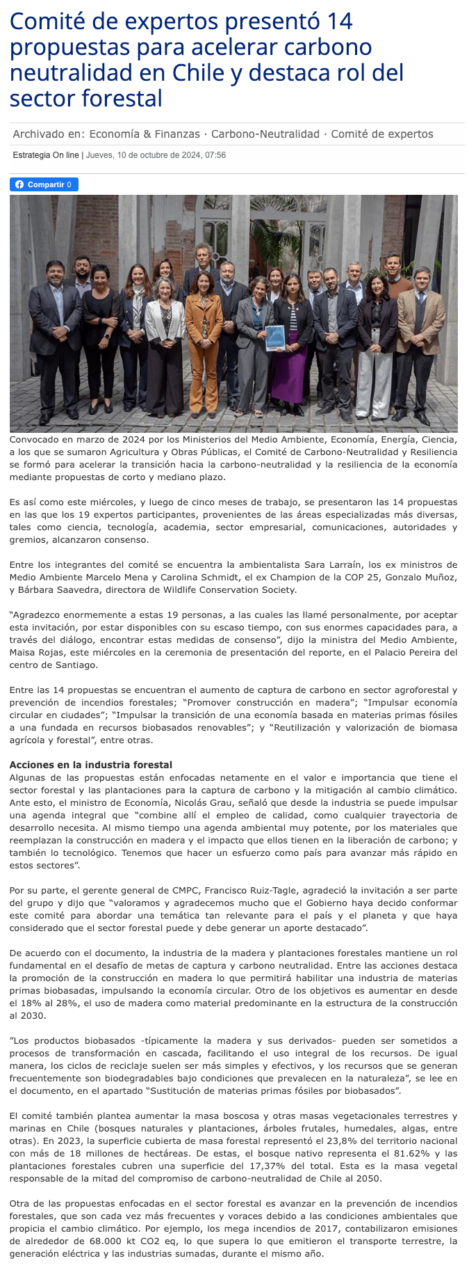 Comité de expertos presenta 14 medidas para acelerar transición a la carbono neutralidad en Chile - (biobiochile online)