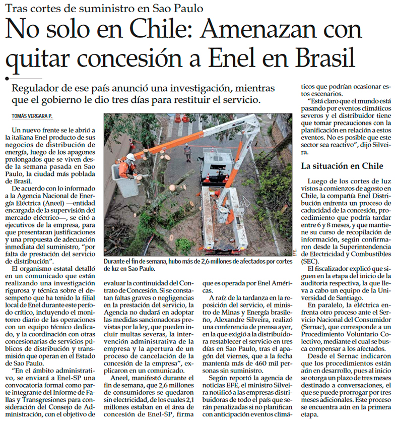 Brasil en picada contra Enel por apagón que afectó a más 2 de millones de clientes en Sao Paulo - (biobiochile online)