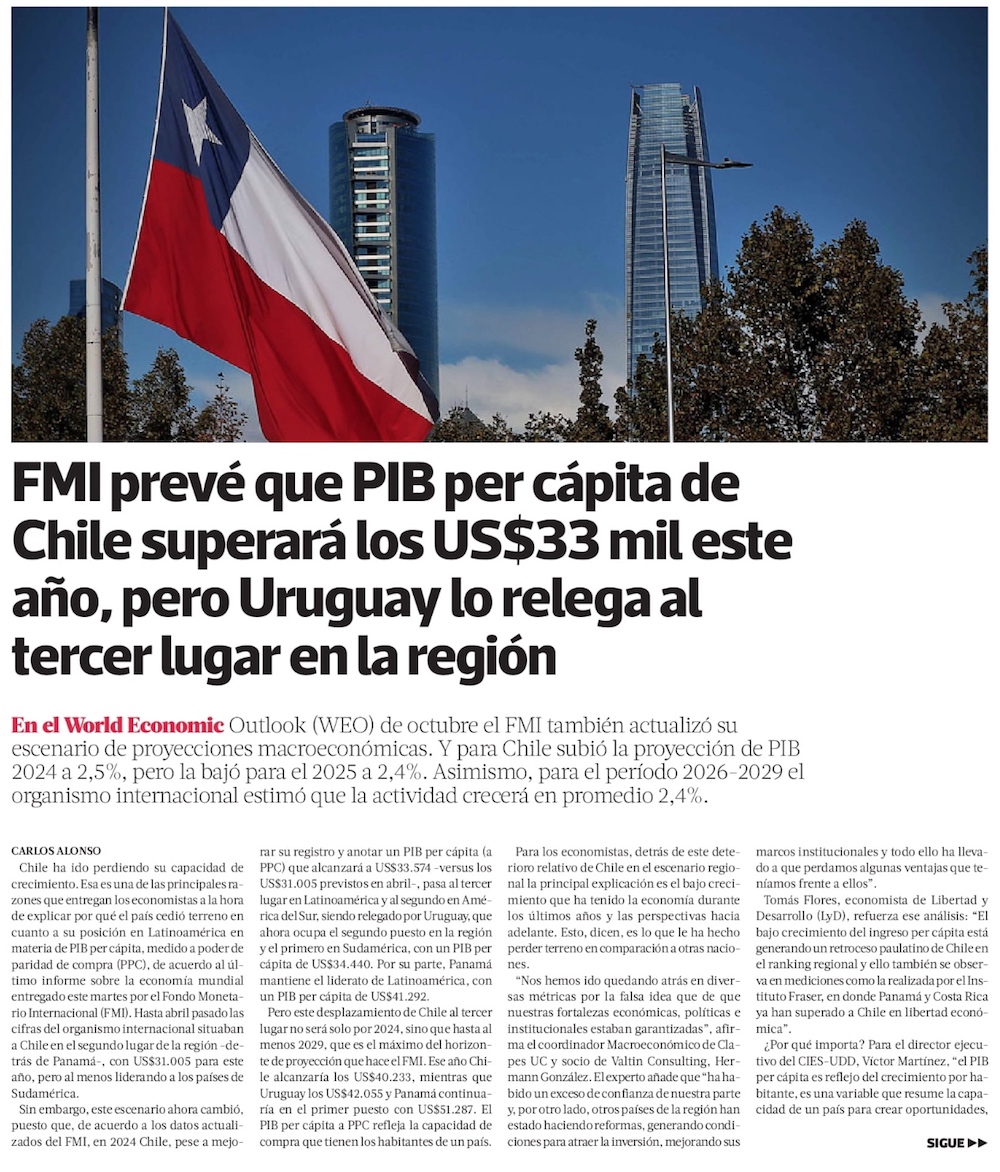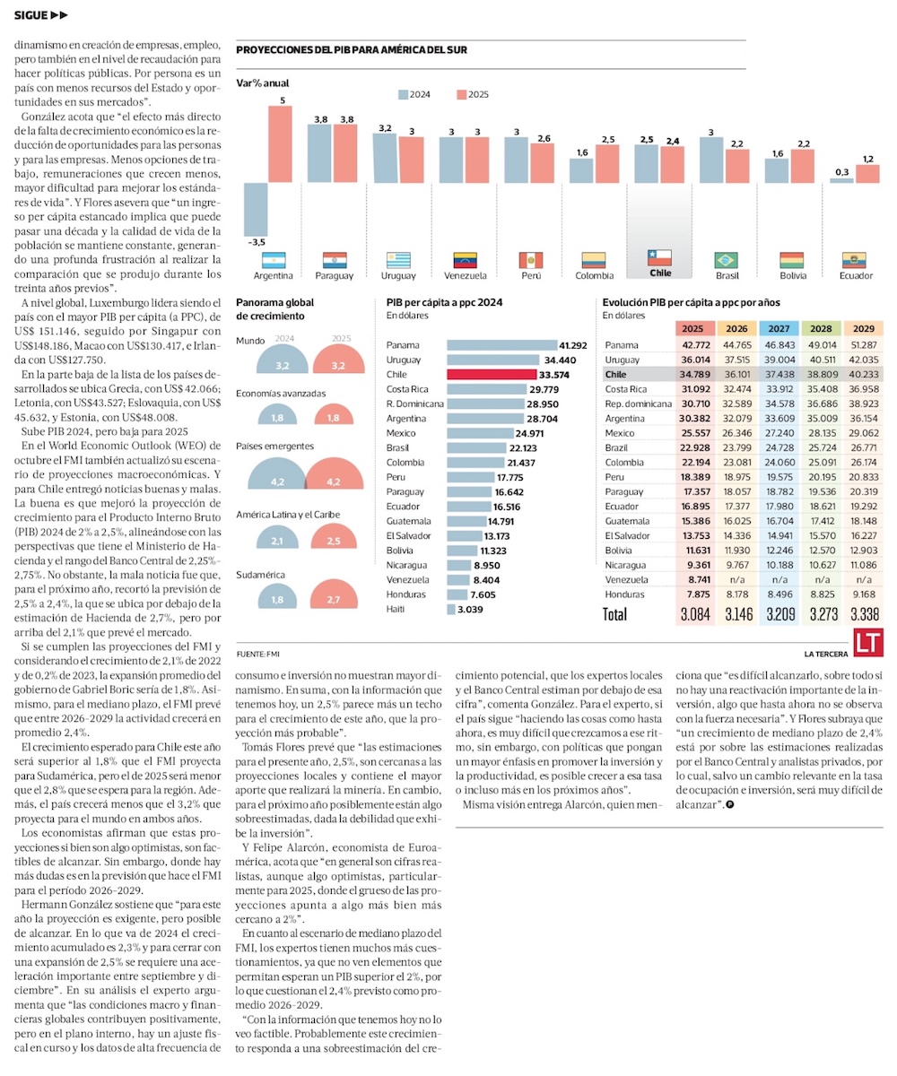 FMI mejora perspectivas para este año y prevé que Chile superará los US$ 40 mil de PIB per cápita en 2029 - (Diario Financiero)