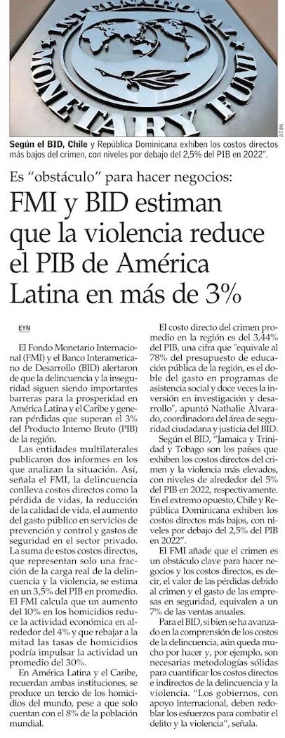 BID calcula que el crimen le cuesta a la región 3,4% del PIB, dos veces los recursos para asistencia social - (Diario Financiero)
